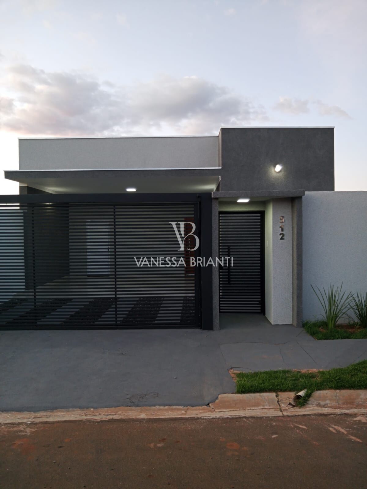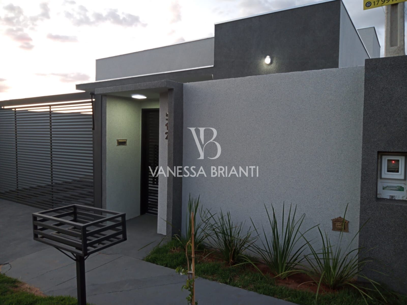 Residência térrea, com garagem coberta e para dois carros (portão social e entrada de veículos de 5 metros), dois dormitórios sendo um tipo suíte, banheiro social, sala e cozinha integrada, com área de serviço e churrasqueira com pia externa.