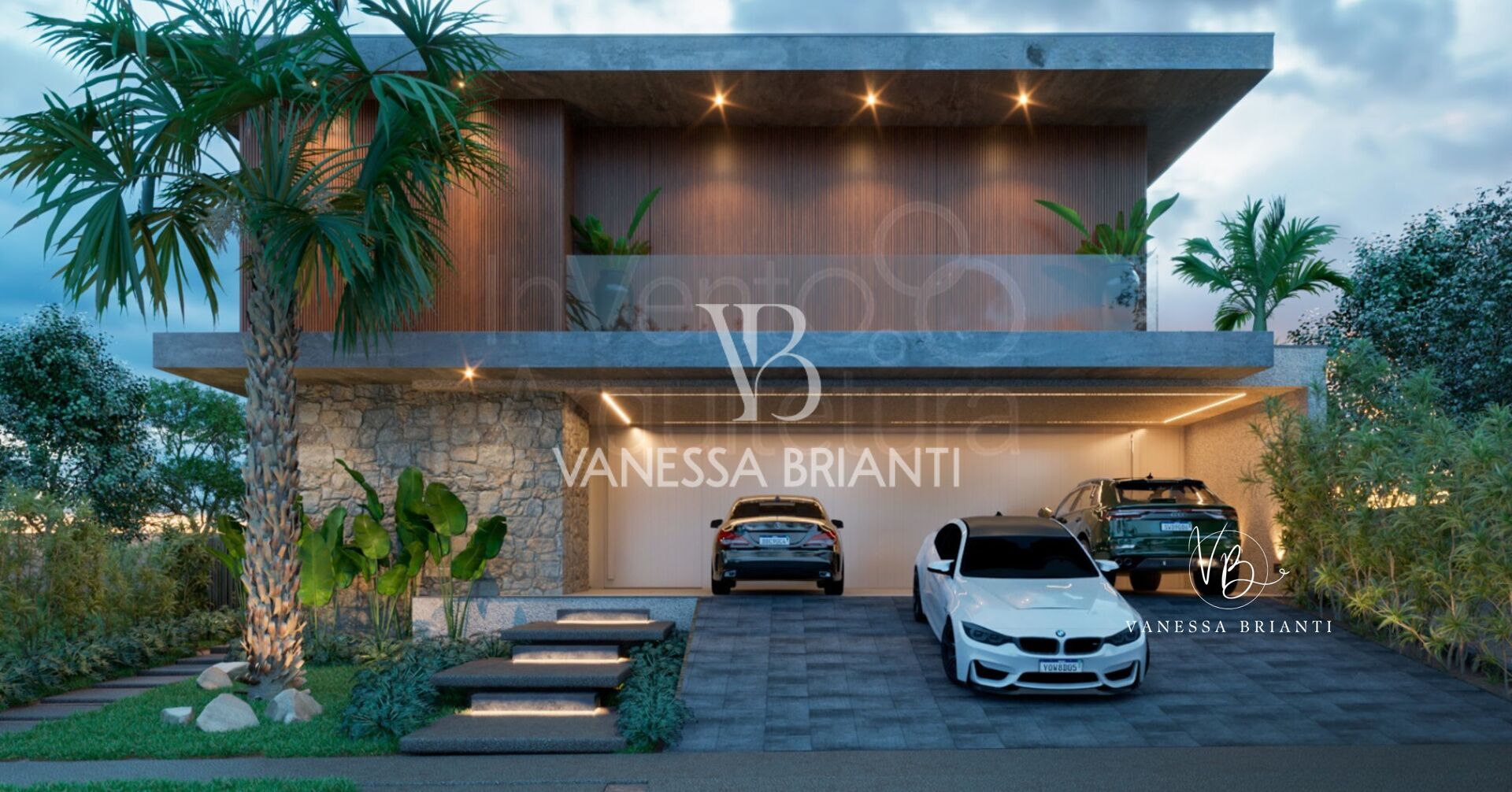 ▪ Fachada moderna com iluminação em led e painéis de alumínio