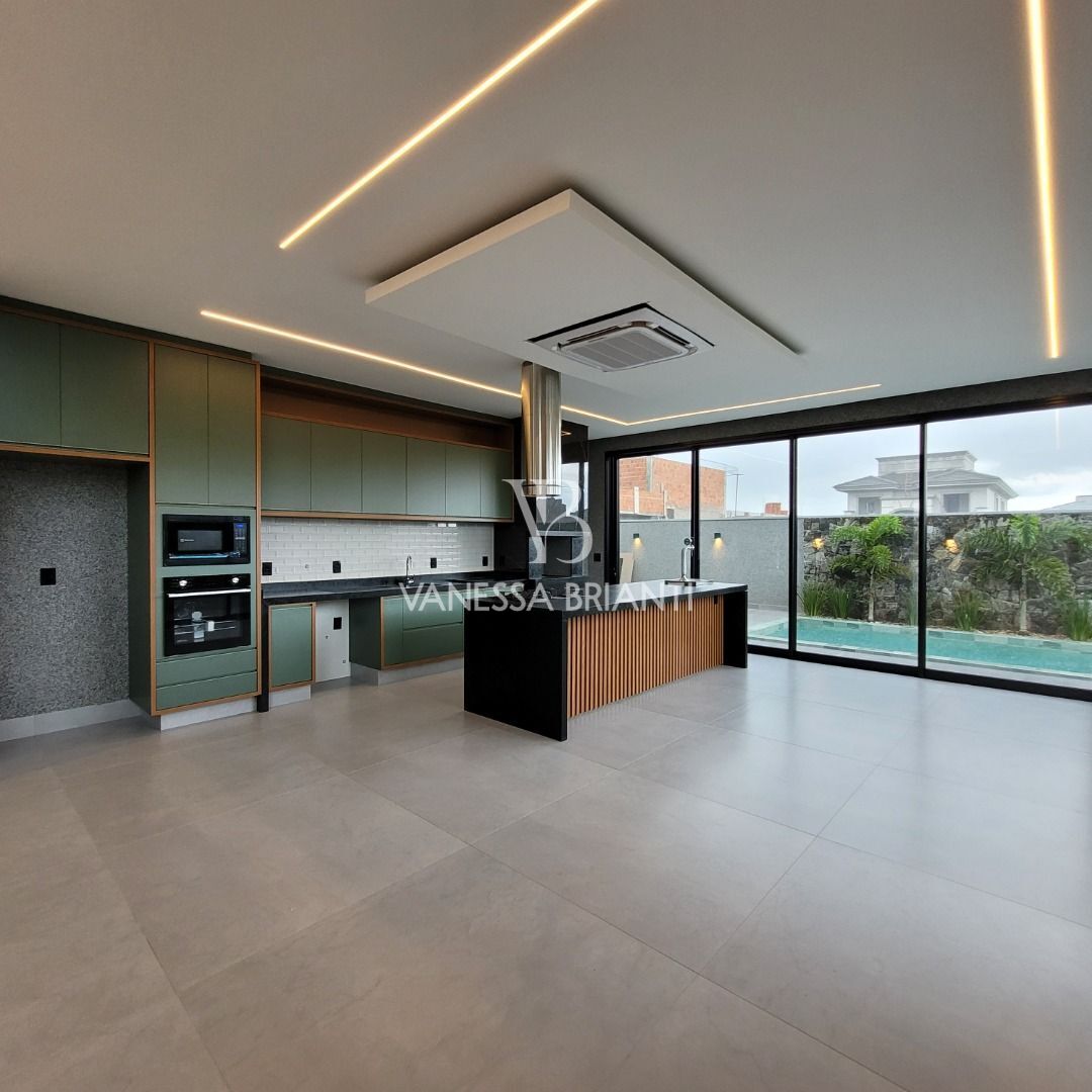 04 dormitórios suítes, sendo 01 master, rica em armários, lavabo, escritório, home, sala com pé direito duplo para 02 ambientes, cozinha gourmet com churrasqueira, piscina, WC Vestiário.